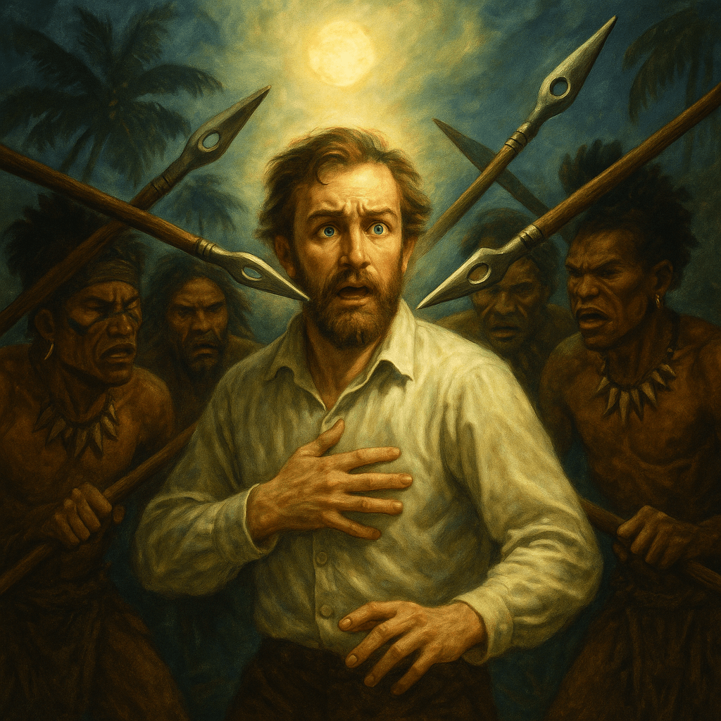 In the dream, he was trapped on a wild island, surrounded by cannibals.